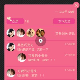 一天一个用户最多给3个选手投票 冠军:价值10000婚礼套餐(1名) 亚军:价值4999婚纱摄影(2名) 季军:价值1800跟妆(3...