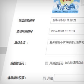 活动关键字应答、起止结束日期、音乐视频投票模块、活动规则、自定义验证码。